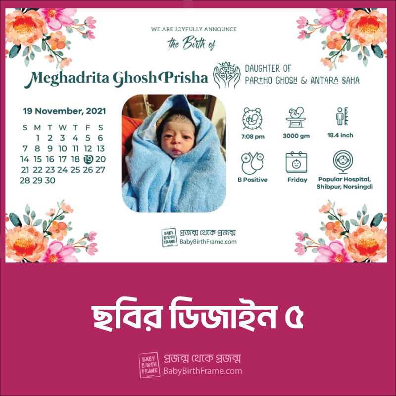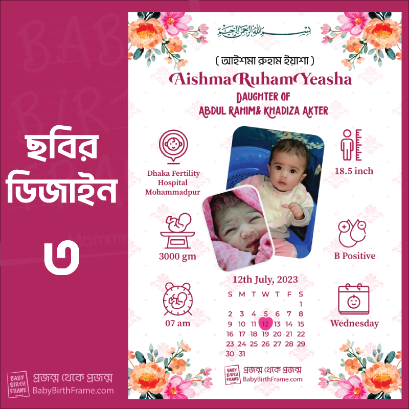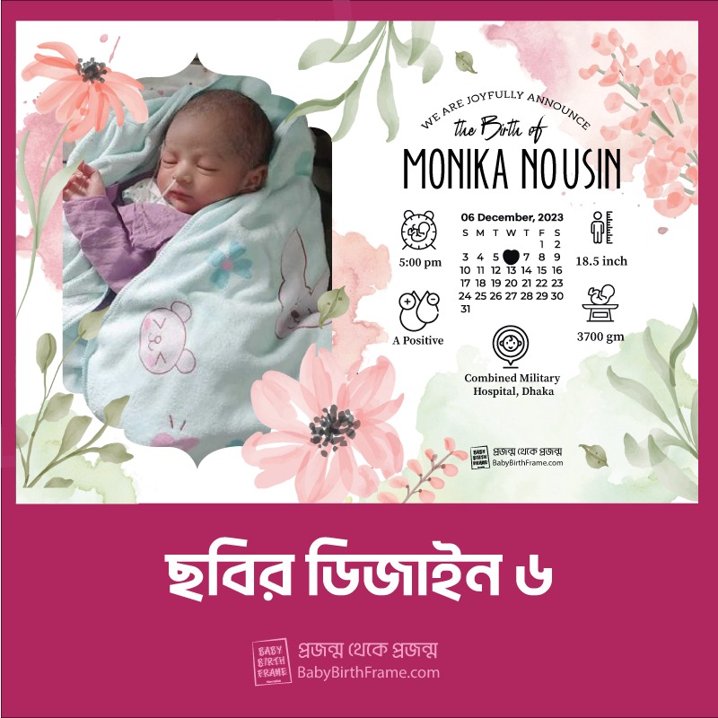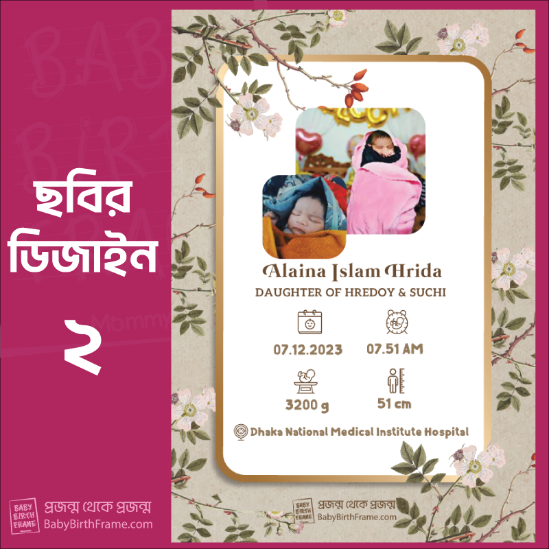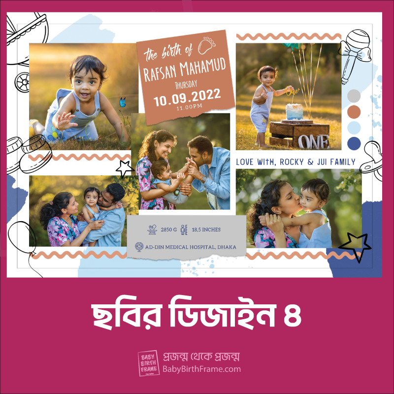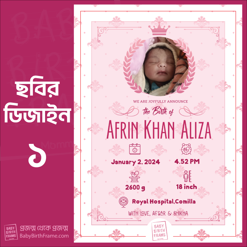 তাই আপনার প্রিয় সোনামণির আগমন এর আনন্দ কে ধরে রাখার অঙ্গিকারে আমরা নিয়ে এসেছি বেবি বার্থ ফ্রেম।